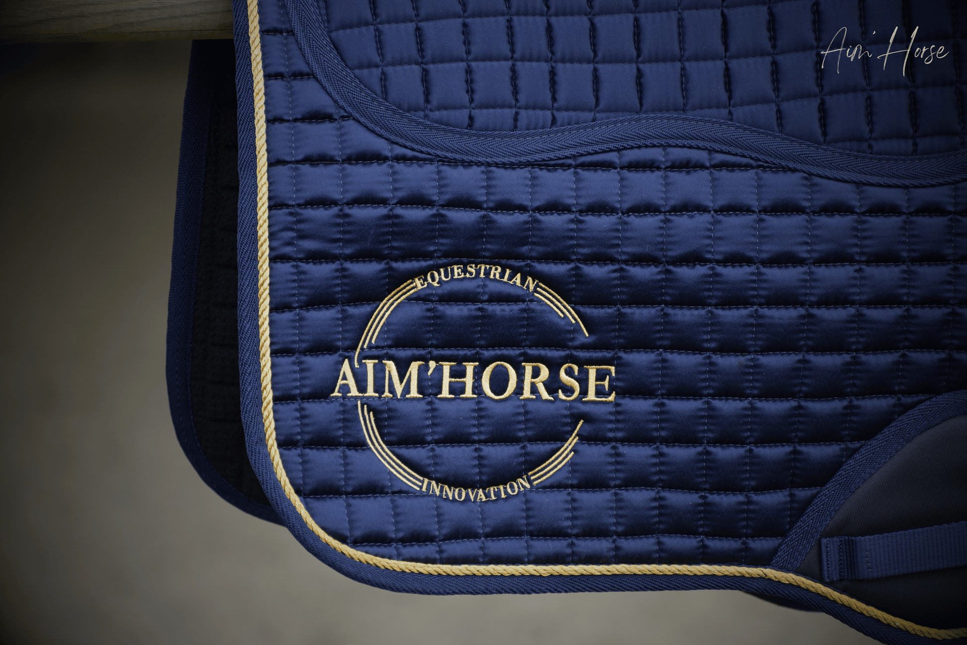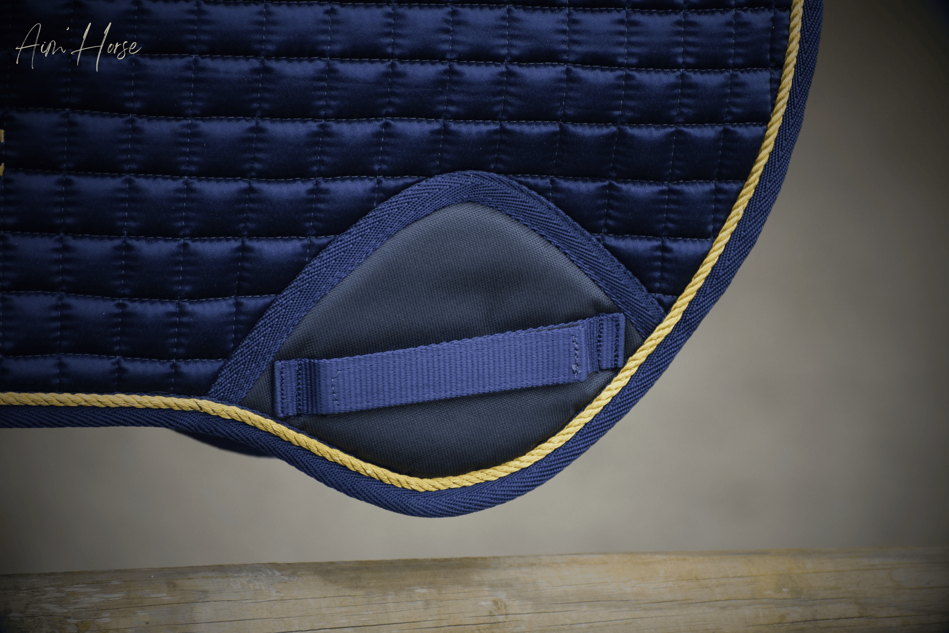 La matière satinée brillante, associée à une cordelette dorée, apporte une touche élégante et raffinée, fidèle à l’univers Aim’Horse.